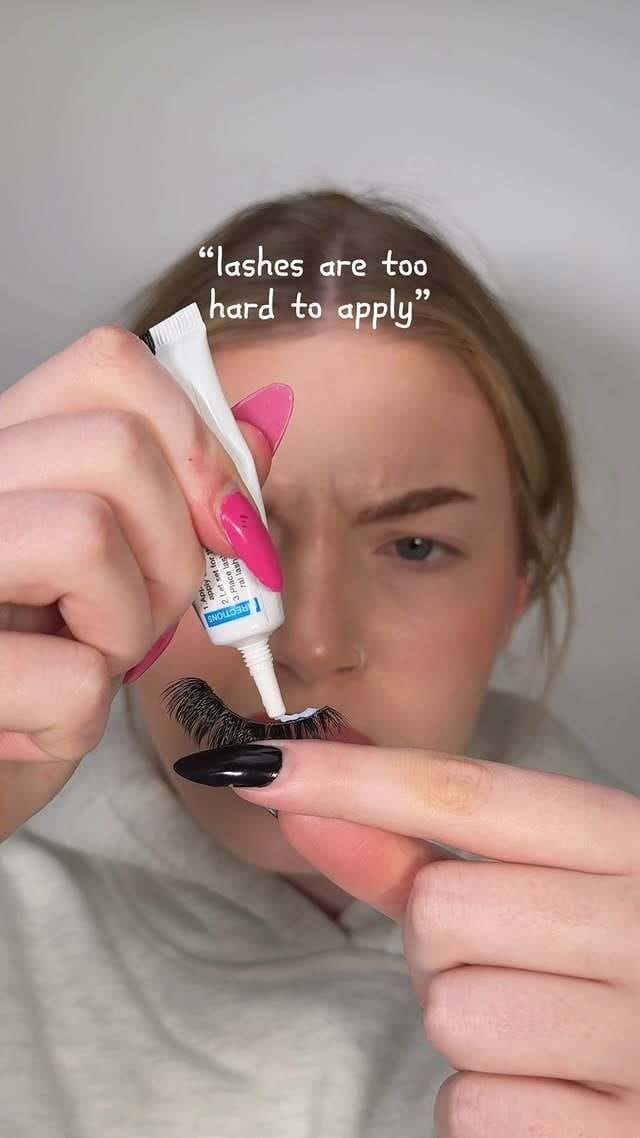 3. Caption Design & Language - The caption “Ditch the glue and swap to our pre-glued lashes girl👀” is optimized for TikTok/IG-native dialect. The phrase “girl👀” is conversational but directive, functioning as a synthetic peer endorsement, not a brand talking at you, but a friend telling you what to do.