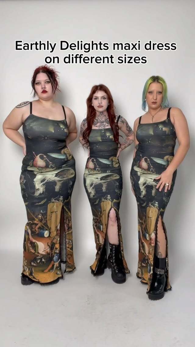 Showing how the "Earthly Delights Maxi Dress" fits different body types builds trust. It reassures buyers that the dress adapts to various forms, reducing the risk of online purchase disappointment.