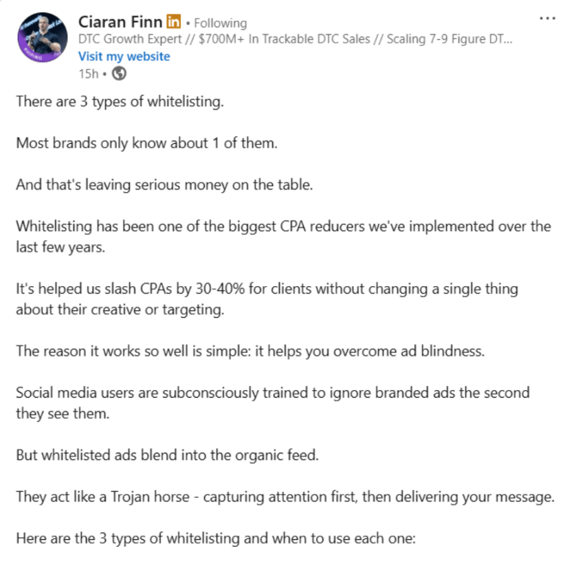 The real takeaway: Whitelisting isn’t one tactic, it’s a spectrum. The brands that scale don’t just run creator ads, they test all three approaches and let the audience decide which wrapper earns attention cheapest.