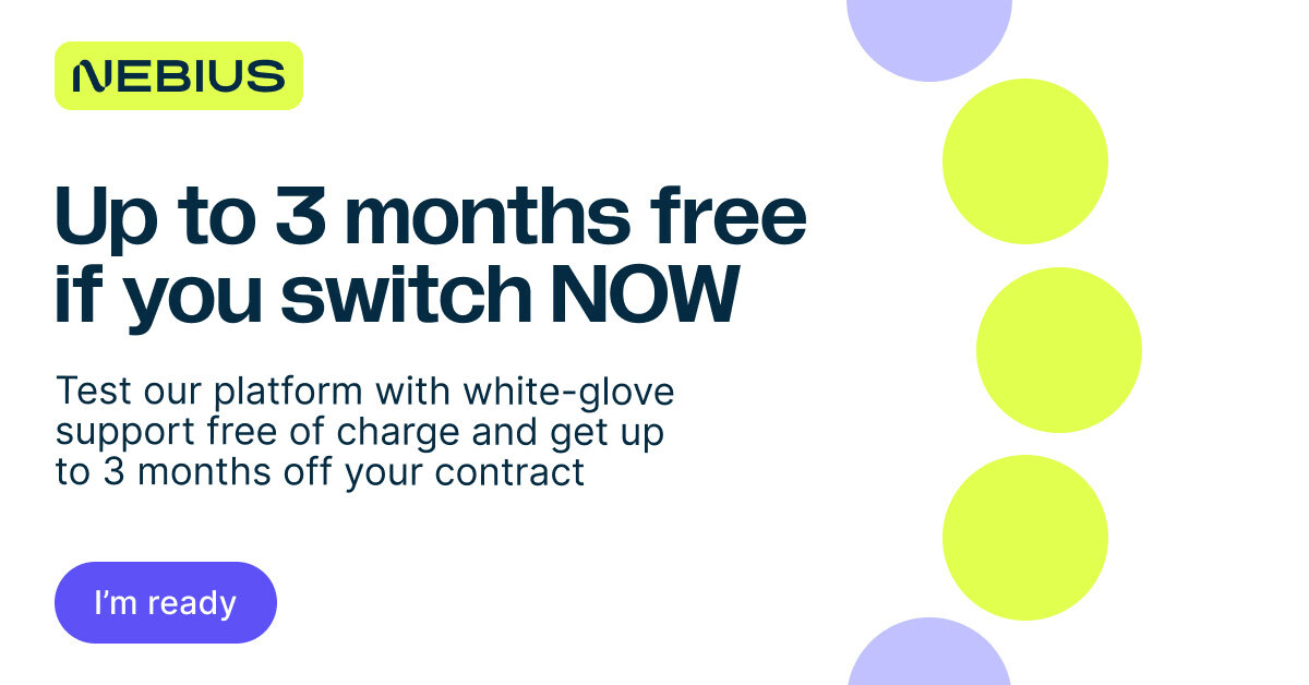 Nebius ends the bleed with free migration and up to three free months, so you start saving instantly.