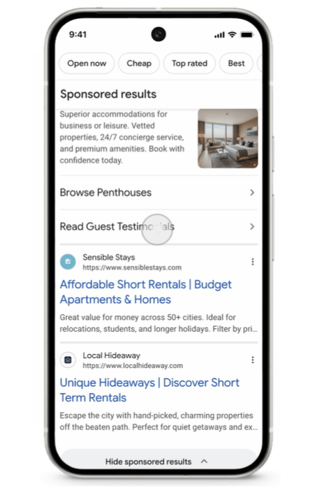 1) Clearer Ad Navigation in Google Search - Google is improving ad visibility with a new “Sponsored results” label that groups text and Shopping ads under one header on desktop and mobile. The label remains visible as users scroll, and a new “Hide sponsored results” option lets them collapse ads to view only organic results.