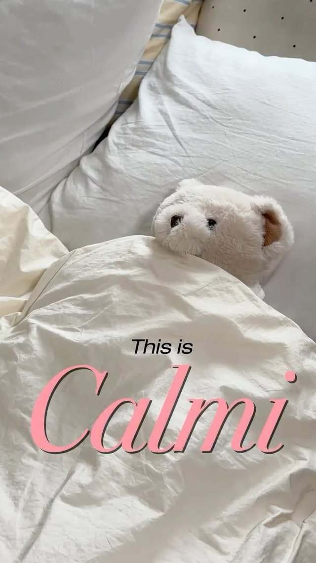 3) Visual + Audio Storytelling - Camera framing: Every shot is tight, tactile, and built around slow intimacy, ideal for calming, high-retention Reels. Prop styling: Miniature robe with embroidered âCalmiâ = high-sensory detail that evokes luxury but stays playful.