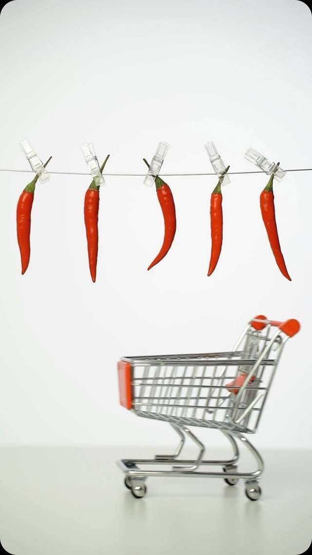 The reel starts with chilies being clipped like laundry, an unexpected, surreal action that disrupts scrolling behavior.