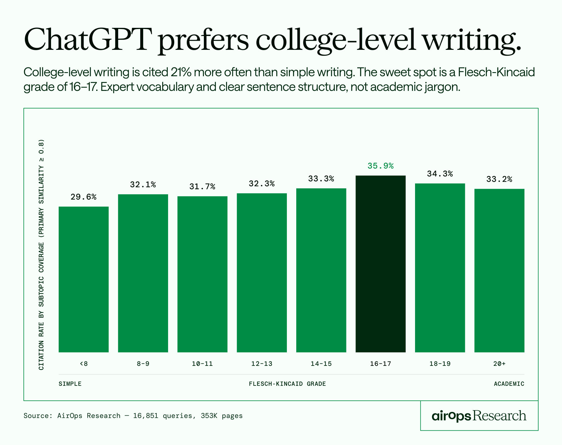 Most marketers are writing for readability. Shorter sentences, simpler words, easier skimming. ChatGPT is penalizing them for it.